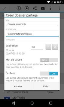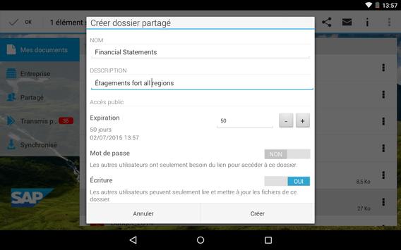• Synchronisation de documents sur votre terminal Android pour un accès hors ligne dans un espace de stockage sécurisé et encodé