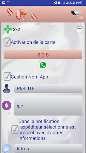 (exemple d'application P6SLite qui gère les caméras, instagram, gmail, e-mail, messages ...)