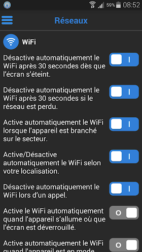 ☆ Désactive le WiFi lorsque l'écran s'éteint et lors d'un appel puis le réactive.