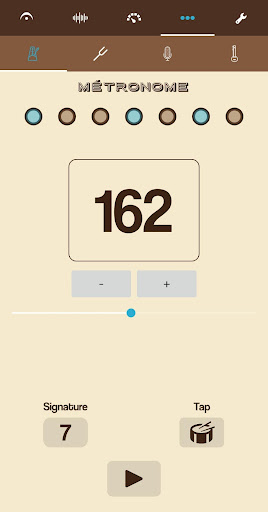 • Pour vous aider dans votre pratique, vous trouverez également un métronome, un enregistreur et un drone.