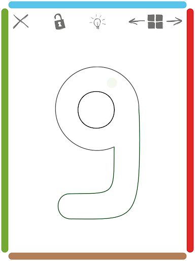 - un cadenas pour "bloquer" le défilement des écrans et approfondir l'apprentissage d'un tracé ou d'un chiffre.