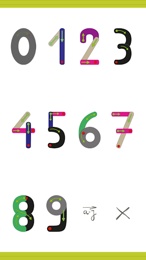 4 tracés de base et 4 chiffres sont accessibles dans cette version d'essai gratuite. La version complète contenant tous les signes et lettres peut être acquise à https://play.google.com/store/apps/details?id=com.serpodile.number