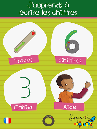 Serpodile vous propose une méthode d'apprentissage basée sur la décomposition (visuelle et verbale) des chiffres en tracés fondamentaux (rond, trait couché ....).