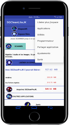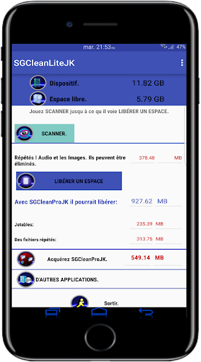 SGClean résout commodément le problème du message qui nous ressemble dans le mobile chaque certain temps: "J'ESPACE PEU D'UN STOCKAGE". Libérez un espace.