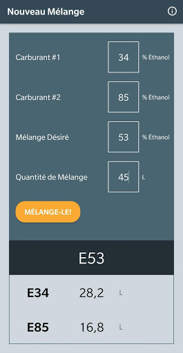 Cet outil aide à déterminer les quantités de deux types de carburant pour obtenir le mélange désiré d'éthanol.