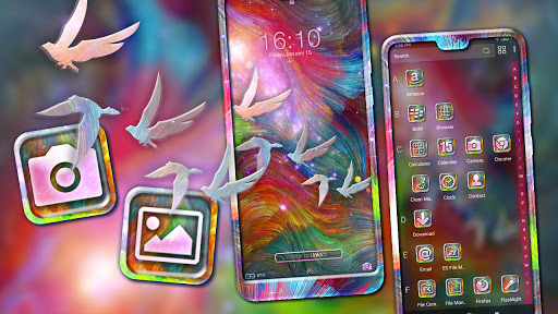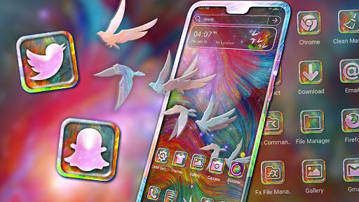Do you want to change the look of phone without spending a penny? Yes It's possible; Right! No need to buy a new phone to change look of your phone. Just install this Hippie Galaxy Bird Theme, It will personalize your smartphone home screen in a way that suits better. This theme consists of variety of icon packs & HD Galaxy Wallpaper, also it will be applied automatically in a seconds and don't need to customize manually. This Theme's icon set is crafted by world's top designers.