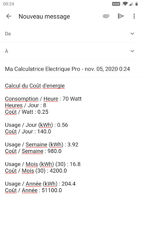 Valeurs et les résultats calculés peuvent être partagés avec les médias sociaux, le courrier, les messages et d'autres applications de partage.