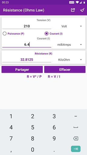Ma Calculatrice Electrique Pro contient 45 calculatrices, qui peut rapidement et facilement calculer différents paramètres électriques. Calculs automatiques et conversions avec chaque unité et de l'évolution de la valeur. Valeurs et les résultats calculés peuvent être partagés avec les médias sociaux, le courrier, les messages et d'autres applications de partage. A doit avoir l'utilité.