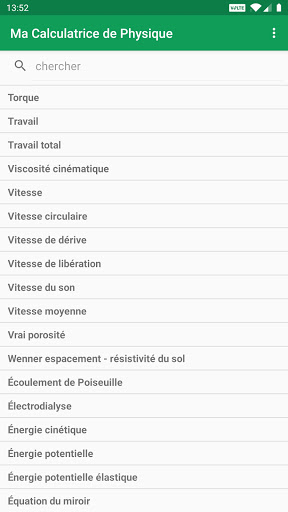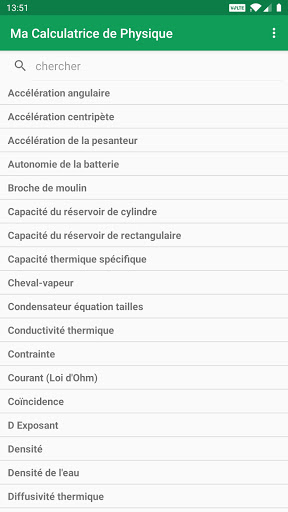 Ma Calculatrice de Physique contient 134 calculatrices suivants: