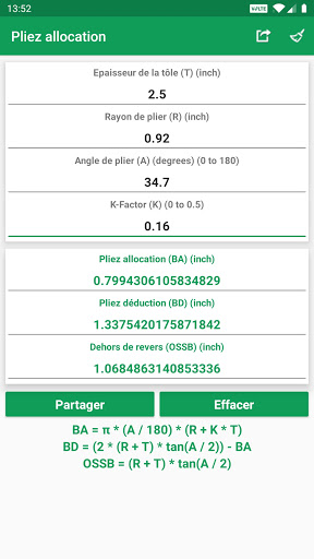 Valeurs et les résultats calculés peuvent être partagés avec les médias sociaux, le courrier, les messages et d'autres applications de partage.