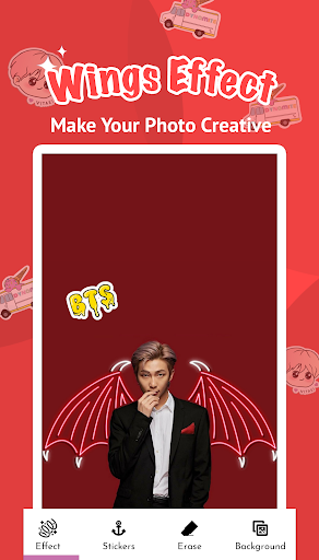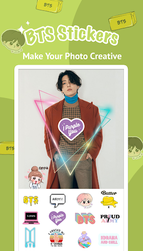 Nous sommes sûrs que BTS Photo Editor vous aidera à avoir un temps ludique avec les amateurs de KPOP et AR MA. Avec des effets et des autocollants étonnants, vous pouvez rendre vos photos devenir art.