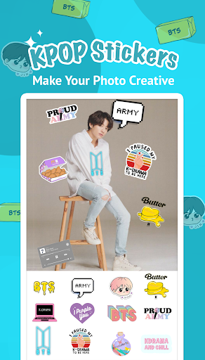 BTS Photo Editor est le meilleur éditeur de photos pour montrer votre amour pour BTS et KPOP sur vos photos avec divers autocollants BTS et des effets de Kawaii.