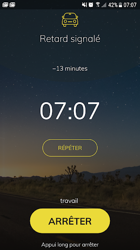 Cette application doit suivre en temps réel les conditions météorologiques et le trafic pendant que vous dormez. Pour cela, nous devons accéder à vos DONNÉES/ WiFi en arrière plan. Vous pourriez constater une petite augmentation de l'utilisation de la batterie. Mais ça vaut vraiment le coup.