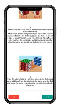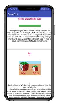 In this app you can read How to Solve a Rubik's Cube 5x5 Step By Step Solving the original 3x3x3 Rubik's Cube is hard and will impress your friends. Solving the 4x4x4 Rubik's Cube is even harder and more impressive. But solving the 5x5x5 Rubik's Cube is even harder and potentially mind-blowing. Once you know how to do it, you can follow through, step by step, to solve even the toughest of cube arrangements.