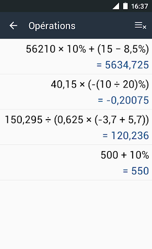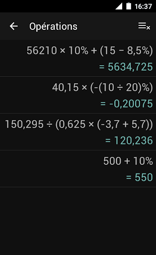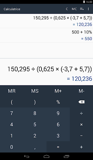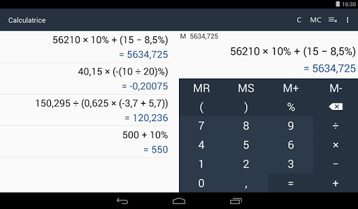 - Sur les tablettes la calculatrice et les opérations effectuées peuvent être affichées en