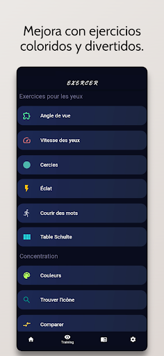 o Améliorez vos muscles oculaires, votre angle visuel et votre capacité de concentration avec des exercices.
