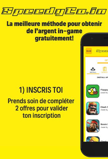 SpeedyCo.in est extrêmement simple, en utilisant l’application 10 minutes par jour tu accumuleras rapidement de l’argent que tu pourras dépenser dans ton jeu favoris! 💰💰💰