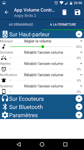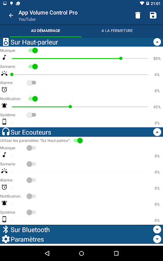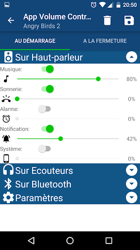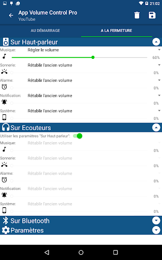 - Réglage des volumes au démarrage des applications.
