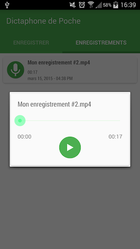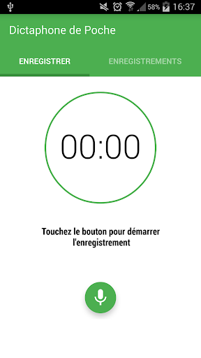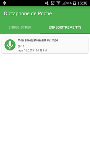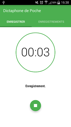 Le Dictaphone Enregistreur Audio de Poche propose une interface Material Design vous permettant d'enregistrer vos sons mais également de gérer les sons précédemment enregistrés.