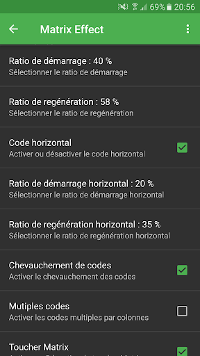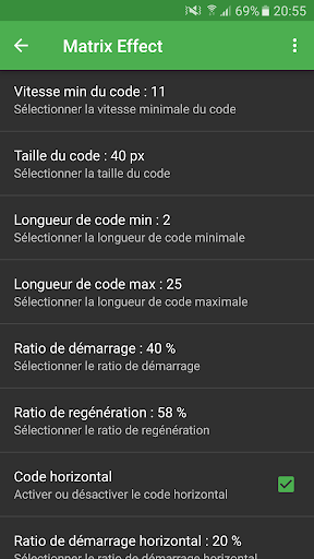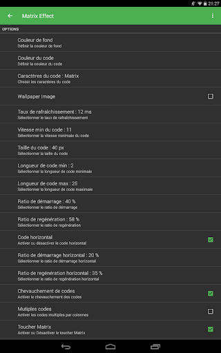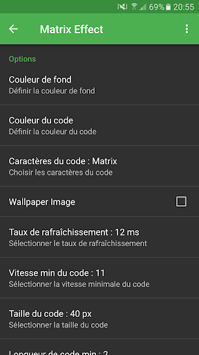 Matrix Effect est entièrement personnablisable permettant ainsi d’adapter l’effet Matrix à votre smartphone et à votre imagination.