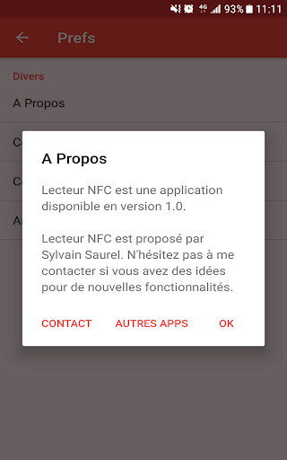 Si vous rencontrez des difficultés pour lire un tag, n'hésitez pas à me contacter par email pour m'aider à résoudre le problème. Vos retours et idées pour améliorer Lecteur NFC sont les bienvenus. Envoyez-moi un email pour cela : sylvain.saurel@gmail.com