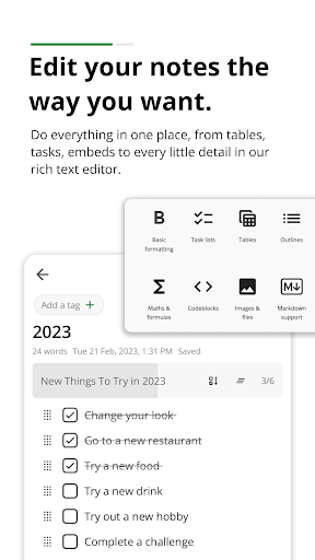 Rédigez des notes avec un contrôle total. Gardez des notes simples ou ajoutez des photos, des tableaux, des intégrations, des listes et même des intégrations et des fichiers. Prenez des mémos avec des formules mathématiques et chimiques.