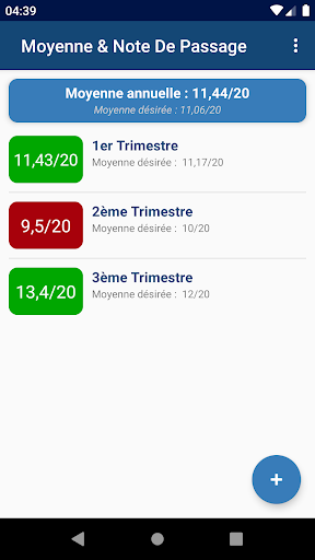 Vous pouvez ajouter plusieurs trimestres/semestres et ainsi voir votre moyenne annuelle. Idéal pour suivre la progression de votre parcours scolaire au fil des trimestres/semestres !