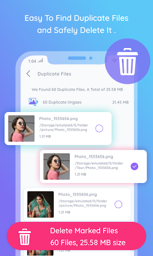 - Get all duplicates file list of images, audios, videos, documents or other files so delete it and increase your phone storage.