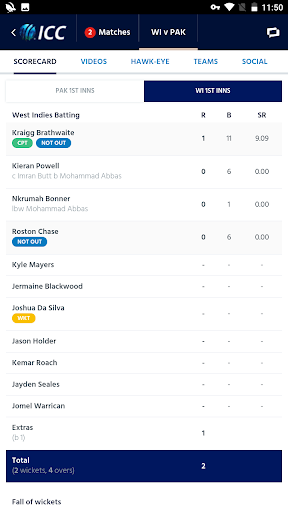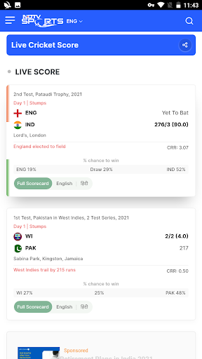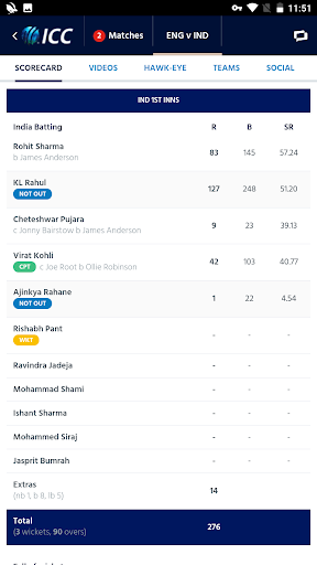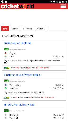 - Résultats des matches récents - au cas où vous voudriez regarder le Scorecard d'un jeu que vous avez récemment manqué.