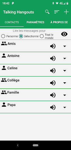 • Énoncez à voix haute les messages de vos Hangouts pour personne, uniquement pour certains contacts ou groupes sélectionnés ou pour tout le monde.