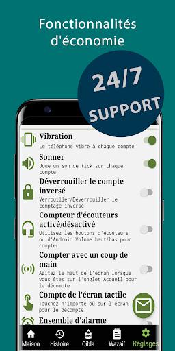 • Comptez dhikr avec le compteur zikr dans l'onglet d'accueil.