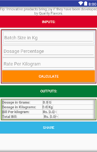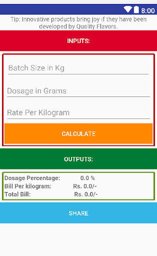 This wonderful app is being used to calculate fragrance dosage in production of different industries like paints , soaps and detergents etc.