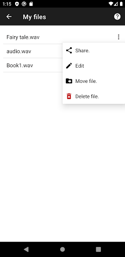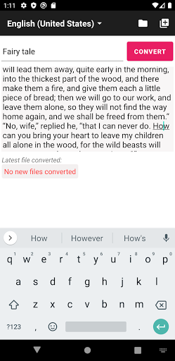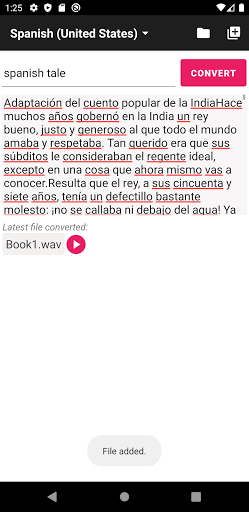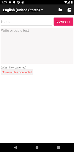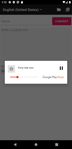 Cette application utilise le calcul de votre téléphone et convertissez le fichier texte en un audio ".wav" en arrière-plan, si le fichier texte est si grand 100 000 caractères ou plusPrenez un peu pour terminer la conversion.Mais ne vous inquiétez pas, vous pouvez aller faire une autre chose parce que cette application n'affecte pas les performances de votre appareil.
