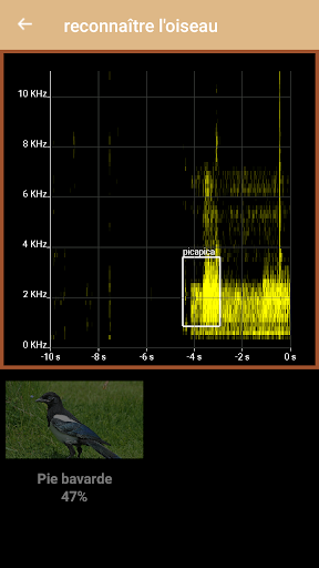 La fonction de reconnaissance utilise le microphone de votre téléphone portable et vous présente une probabilité d'identification. L'algorithme est perfectible et peut donner des probabilités surévaluées (en particulier une probabilité de 100% ne doit pas être considérée comme exacte).