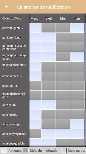 - Un calendrier des espèces indiquant les mois de reproduction.