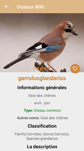 - Un wiki d'environ 150 espèces d'oiseaux avec description, photo, habitat, rareté, date de nidification et plus encore.