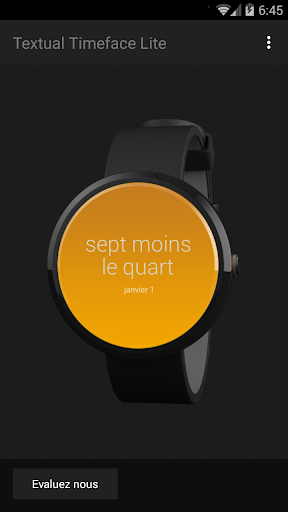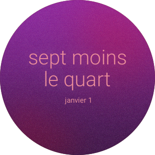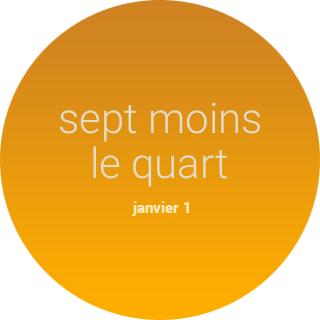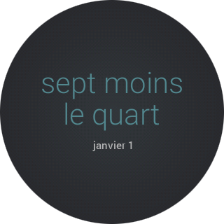 Au lieu des chiffres traditionels et des aguilles traditionelles la surface de ce montre présente le temps par un texte. Regardant le montre, le temps de «6:45» est représenté par «sept moins le quart».
