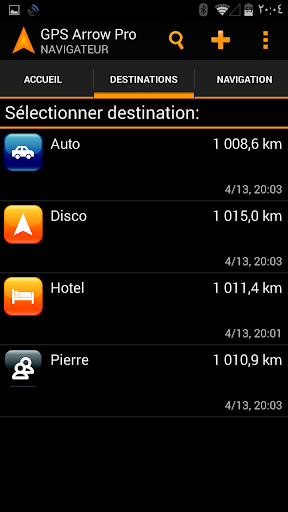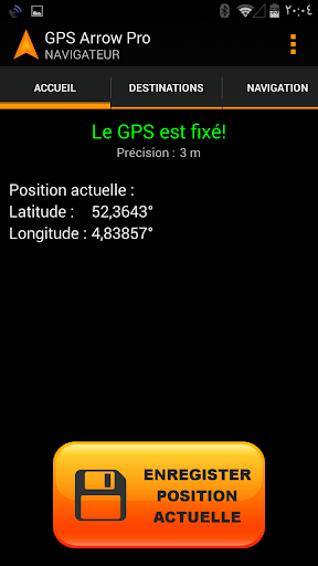 Enregistrez votre position actuelle et utilisez-la plus tard comme destination pour retrouver votre chemin vers votre voiture, votre hôtel, vos amis, et ainsi de suite! Il est également possible d'entrer des coordonnées à la main ou de sélectionner un lieu sur la carte intégrée (Map n'est supporté que dans la version Pro).