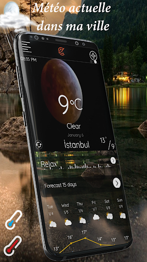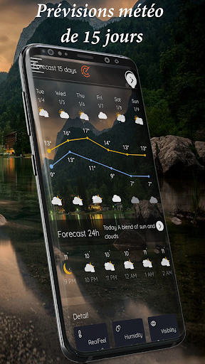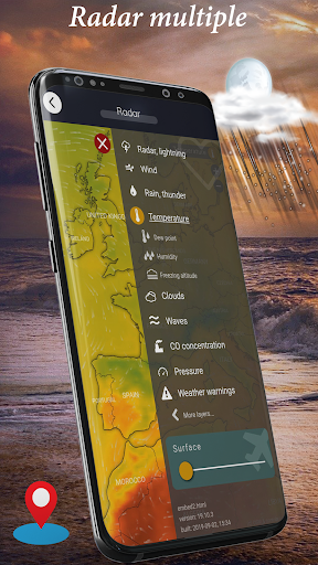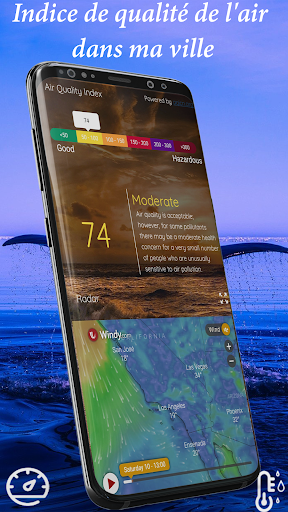 Une information météo complète est à votre disposition à tout moment : température en temps réel, probabilité de précipitations, lever et coucher du soleil, phase de lune, qualité de l'air, vitesse du vent, humidité, distance de visibilité, carte radar.