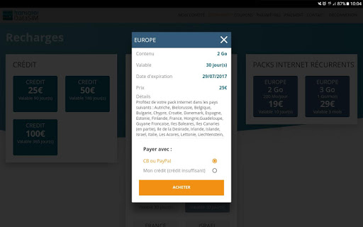 - VOIR LA SITUATION de votre compte : votre crédit ou votre solde restant, la date d'expiration de votre crédit et de vos packs internet existants.