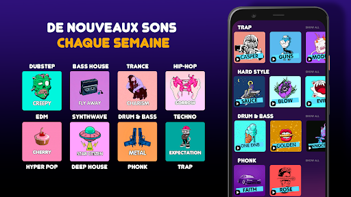 Faire de la musique est devenu plus facile avec notre application. Vous pouvez non seulement créer de la musique, mais aussi créer des rythmes. Beat Machine rend la création musicale possible n'importe où. Et les battements ajouteront un rythme spécial au son.
