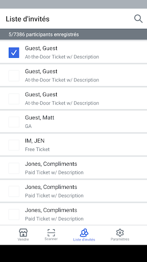 - L'acheteur a oublié son billet ? Aucun problème ! Contrôlez les billets des participants en les cherchant par leur nom ou en parcourant la liste