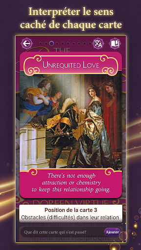 Bienvenue dans l'Univers Oracle Cards ! Dans cette application, vous trouverez plus de 125 collections de cartes Oracle et Tarot et 280 types de spreads différents.