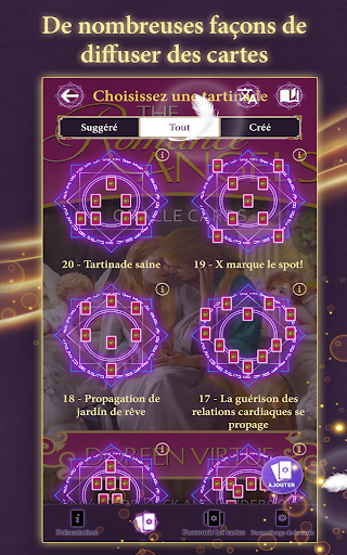 - Explorez différents types de spreads et de lectures (280 types de spreads)
