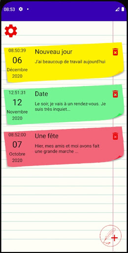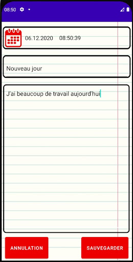Dans cette application, vous pouvez: 1) Tenez un journal, notez vos pensées et vos souvenirs 2) Définissez un mot de passe pour le journal 3) Personnalisez l'arrière-plan et la couleur des éléments