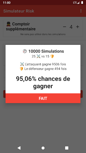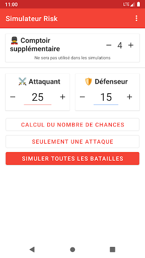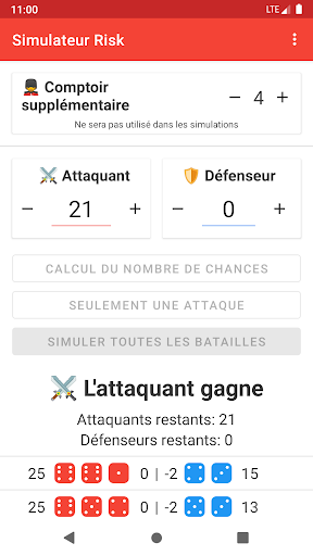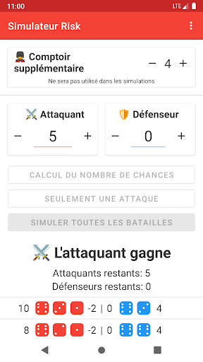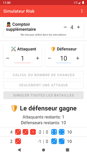 Le simulateur de bataille à risque peut soit simuler le combat dans son intégralité, soit simuler chaque tour individuellement.