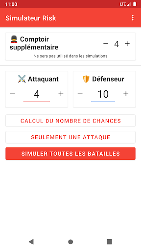Le calculateur de bataille à risque vous permet de simuler des combats lorsque vous jouez au jeu de plateau à risque - sans lancer de dés. Risk Calculator calcule les attaquants et les défenseurs restants et vous montre chaque tour de combat Risk Battle.