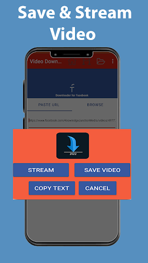 Le téléchargeur de vidéo pour Facebook est utilisé pour enregistrer des vidéos Facebook sur vos téléphones mobiles. Video Downloader pour Facebook peut facilement enregistrer des vidéos Facebook Vous devez copier le lien de la vidéo, puis ouvrez le téléchargeur de vidéos pour Facebook et coller le lien vidéo dans FB Video Downloader, puis cliquez sur Afficher le contenu dans FB Video Downloader. Un écran contextuel apparaît. Dans FB Video Downloader, il existe deux options de flux vidéo et enregistrez la vidéo si vous souhaitez lire une vidéo dans le lecteur vidéo de cette application FB Downloader, puis utilisez l'option Stream de cette application, il jouera la vidéo dans son lecteur vidéo et si vous voulez. Enregistrez la vidéo sur votre téléphone portable puis utilisez l'option Enregistrer la vidéo de Facebook Video Saver.
