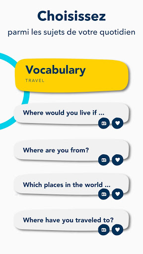 Ainsi, vous pouvez vous tester, jour après jour, pour essayer de nouveaux sujets, de plus en plus complexes. Une autre façon de réviser et de consulter le contenu didactique en dehors des cours d’anglais classiques.