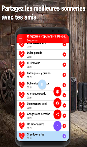 Téléchargez maintenant les meilleures sonneries Despecho pour votre téléphone portable, dans cette application de musique populaire 2021, où vous trouverez le meilleur de la musique gratuite de cantina, des chansons de chagrin gratuites, dans cette application, vous trouverez des sons de guasca pour WhatsApp, des sons pour le dépit gratuitement, des chansons de rancheras tonalités pour les appels, où vous pouvez définir des tonalités originales pour les téléphones portables.
